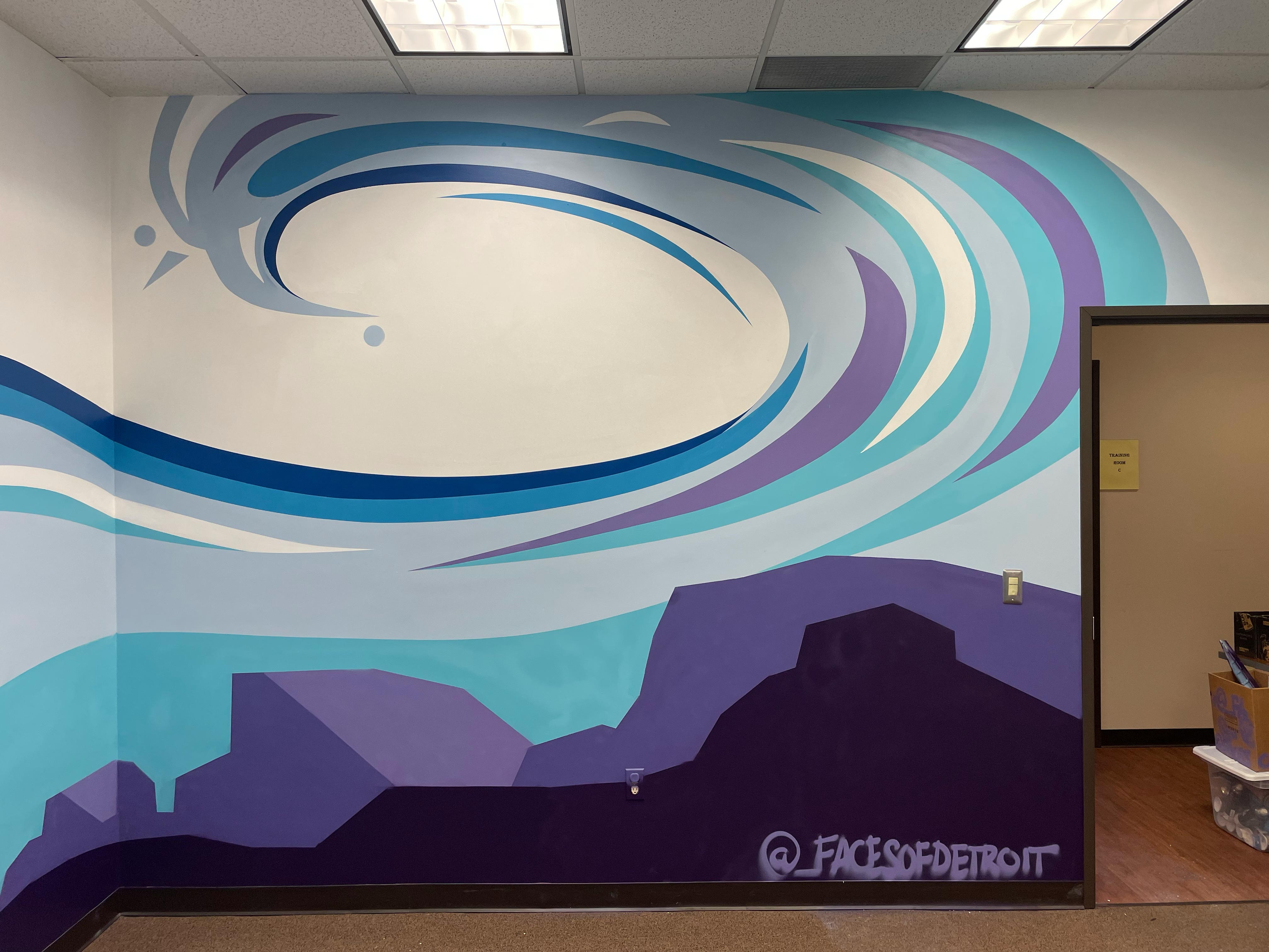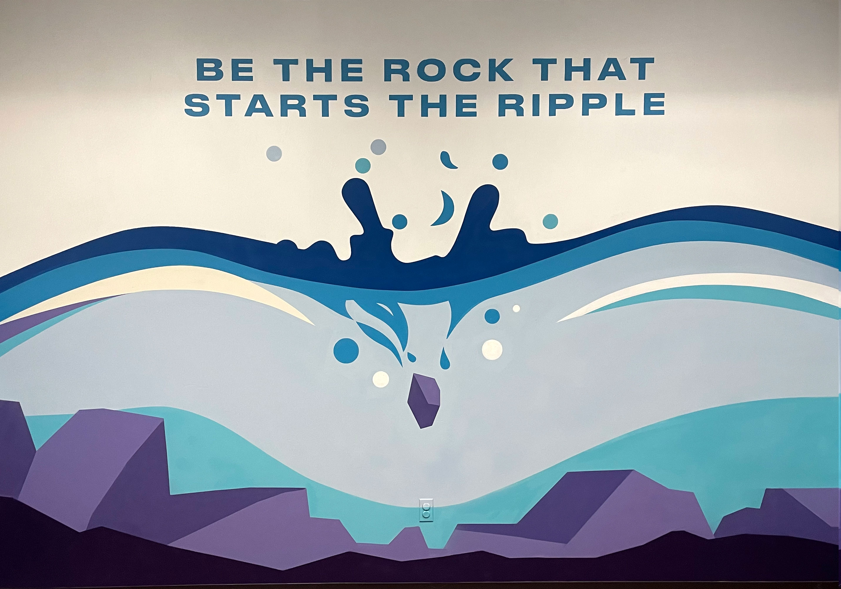 This was my second mural job, done for Samaritas which is a local non-profit that specializes in providing social services for kids and seniors. They gave me the theme "be the rock that starts the ripple" so I created this design that tried to portray that in a fun way as this was for a kids room. It was a blast to work on, but wasn't without its challenges as all of the curves had to be perfect!